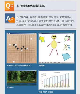 本书涉及大数据展示、网络爬虫、游戏等Python热点应用领域,涉及广泛,把深奥的原理用通俗易懂的语言表达出来,一学就会。