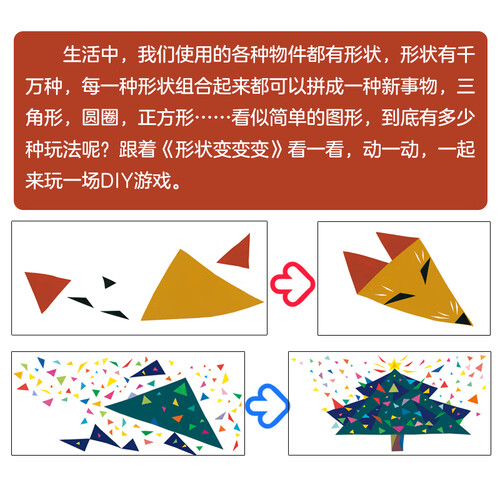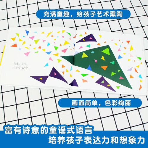 通过简单的画面构图与色彩绚丽的图形,吸引孩子的阅读兴趣的同时,帮助孩子建立对形状、颜色和数字的认知。