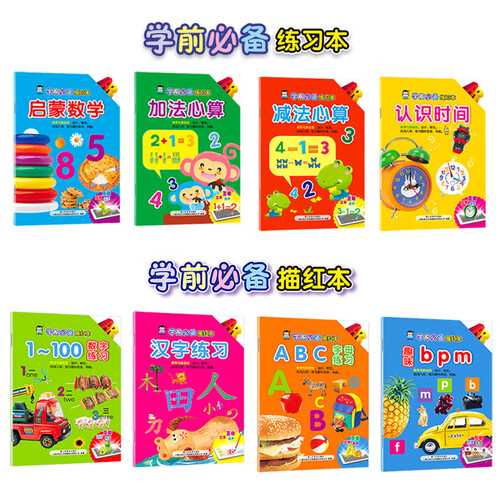 专为学龄前儿童打造的练习册和描红册,涵盖拼音、汉字、英文、数字等各方面知识点。形式新颖多样,层层深入帮助快速学习和认知。