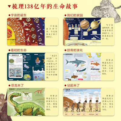 从宇宙起源讲起,科普内容横跨138亿年,对200多个物种进行详尽的科普,以大灭绝与生命两条明暗线,助孩子了解生命的起源。
