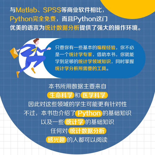 这本书以基础的统计学知识和假设检验为重点,简明扼要地讲述了Python数据的应用,并针对每种方法,都提供简明的解决方案。