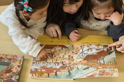 基本依照传世名画之一的《清明上河图》原画创作,放大细节,提亮画面色彩,融入大量知识点,带孩子体验宋朝历史。