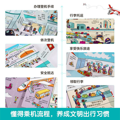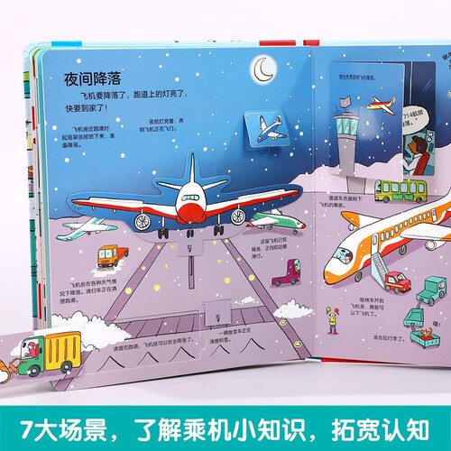 本书通过有趣的翻翻页、转盘、拉拉页等互动形式,能让小朋友学习到很多与机场和飞机有关的科学知识和生活常识。