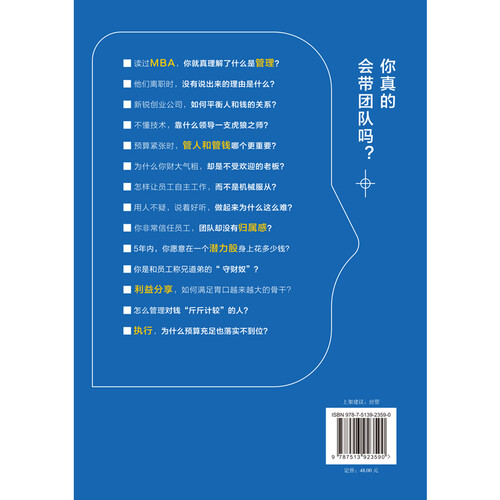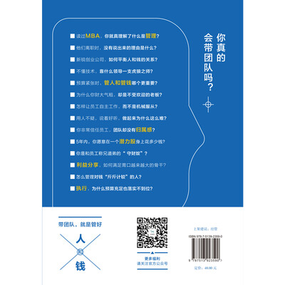 这本书构建了以人、钱为支柱、以权为枢纽的管理铁三角,解决团队发展的50项难题,帮助读者成为优秀的团队掌舵人。