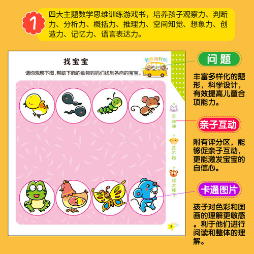 专为二到六岁儿童打造的思维训练书籍,幽默风趣的画风加上简洁的文字,轻松培养孩子的观察、分析、语言等方面的能力。