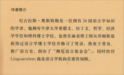 语言史的发展正是世界历史的映射,本书通过世界各地语言的起源流通繁衍,展现了语言背后的经济政治发展历程。