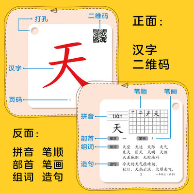 用彩色字体详细介绍了拼音,部首,笔画等知识,科学提升孩子对汉字的认知能力,为孩子进一步的汉字学习打下基础。