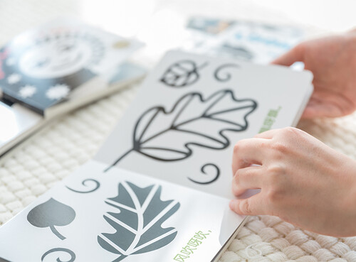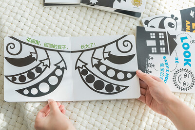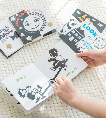 黑白图案对比强烈,很好的刺激宝宝视网膜发育,搭配简单文字朗朗上口,边读边看视语双启蒙。绿色印刷科技,触摸更安全。