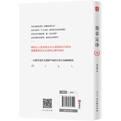 该书是非常实用的日常行为心理指南,为我们揭秘心理学定律。通过流畅的语言与丰富的案例,助我们改善思维方法追寻更好生活。