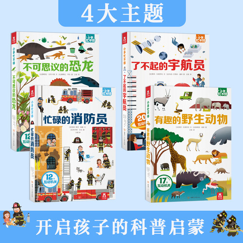 寓教于乐,开启孩子知识启蒙的大门;跟随宇航员上天,跟随古生物学家挖恐龙,让孩子在阅读中体验不同的经历。