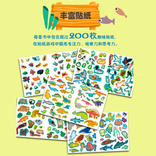 包含了200多种不同的贴纸,可以锻炼宝宝的专注力、观察力等各种能力。复杂的字标注了拼音,方便阅读。