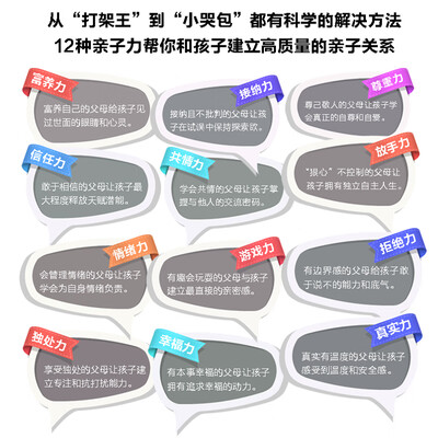 作者把丰富的从业经历与育儿经验相结合,讲解亲子关系的内核,将其细化分解为可执行的12种亲子关系力,建立高质量的亲子关系。