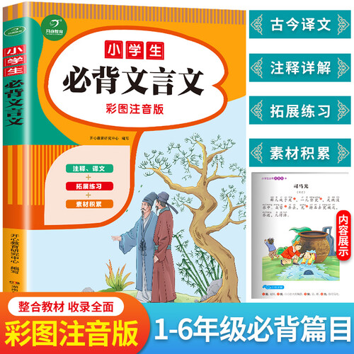 收录了小学语文教材中的文言文,还选编了成语典故、历史故事、古代笑话和神话传说等,可以帮助学生了解古代文言文的各种体式。
