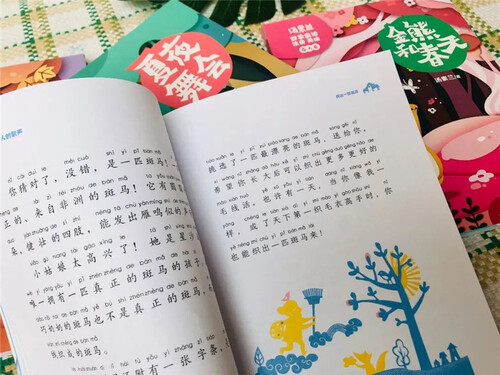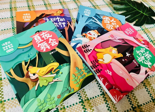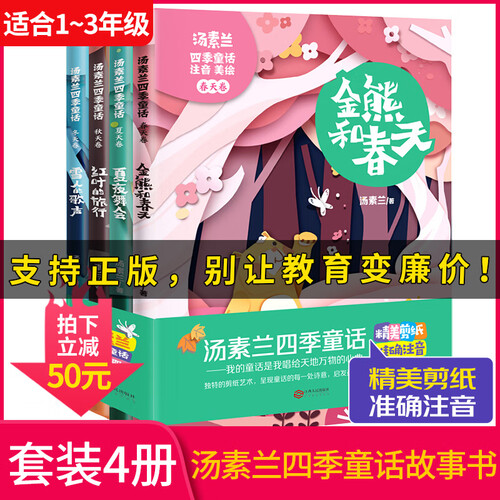 一套四本,分为春夏秋冬,春天生机萌发,夏天肆意生长,秋天硕果累累,冬天安静深沉。并且配有注音和剪纸插图,吸引孩子阅读。