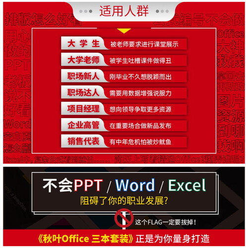 涵盖Word、Excel、PPT三大基础软件,书中没有过多深奥的技术,一切以实际问题为引导,满足多数职场人士学习。