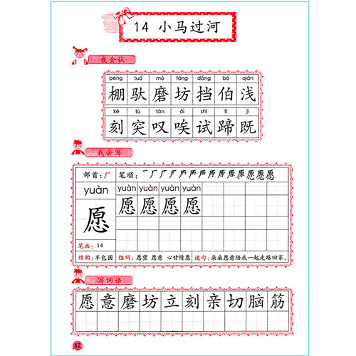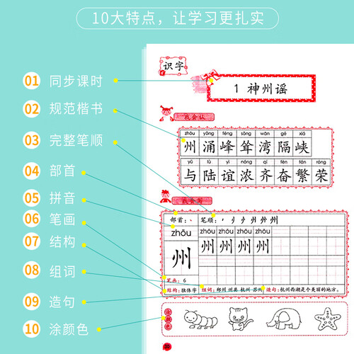 这套书涵盖了汉字的部首、拼音、笔画等多方面的内容,旨在通过反复的描写,提升学生的识字与书写能力。