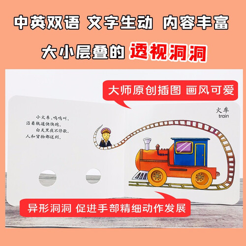 这是一套专为0-3岁的宝宝们量身定制的益智玩具书,书中的文字简洁有趣,关键字词还配有英文,符合孩子的语言习惯。