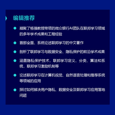 阅读本书,读者将能掌握如何将分布式机器学习与密码学等知识结合起来,并解决分散数据的使用问题。采用了全彩印刷,阅读体验佳。