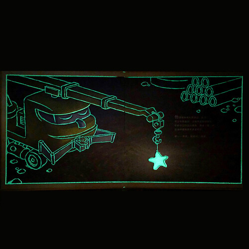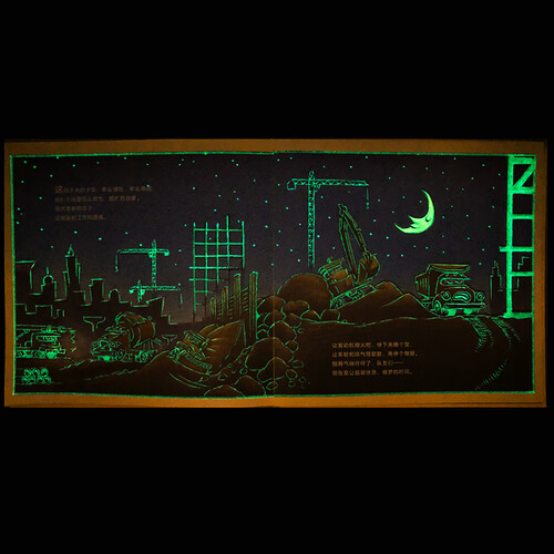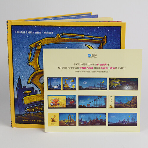 这是一本会发光的工地车故事书,当夜色来临之时,小车迷就看到白天看不到的奇幻景色。如果用手摸,还可以感受到凸起的地方。
