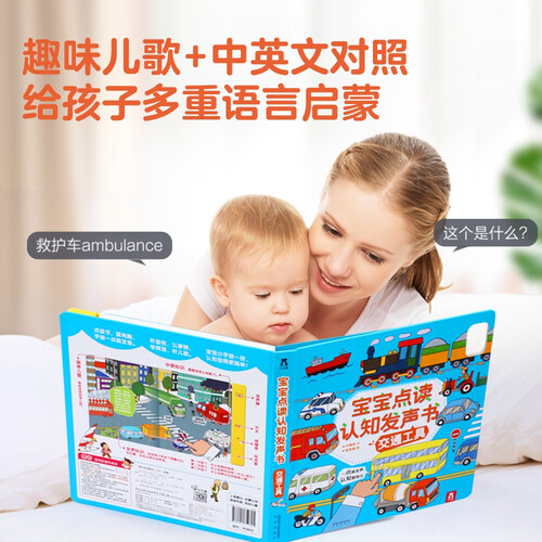 这是一套低幼认知书,教宝宝认知动物和交通工具,宝宝用手按下相应的发声位置,会发出音效,可以中英文朗读,培养宝宝认知能力和动手能力。