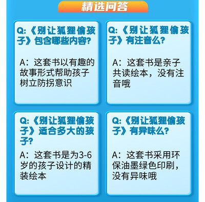 书本讲述了坏狐狸利用各种诱骗手法,企图偷孩子的故事。家长可以通过故事向孩子灌输自我保护的意识,以及自我保护方法。