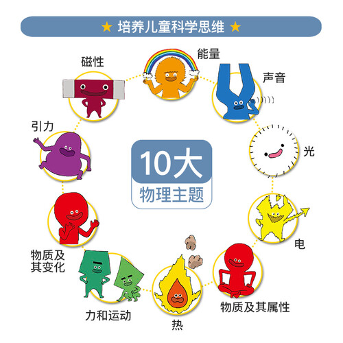 此书对能量、磁性、引力等十大物理主题,对生活的现象以物理知识进行解锁,内容精确,用卡通漫画的形式,获得孩子的欢心。