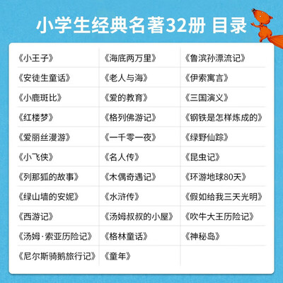 经典名著全套36册的礼盒套装,内含国内外的世界名著和经典童话,一应俱全,好次累积,好句仿写,帮助小学生提升能力。