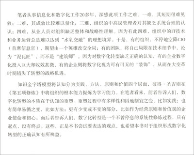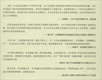 这本书全面、系统地介绍了企业数字化转型,兼顾理论与实战,清晰地讲述了转型的基本范式。知识与案例相结合,分析生动、细致。