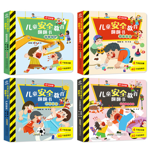 这套书涉及居家、户外、公共场所和自我保护4个方面的安全知识,将知识与游戏相结合,采用翻翻书的方式,提升孩子的安全常识。