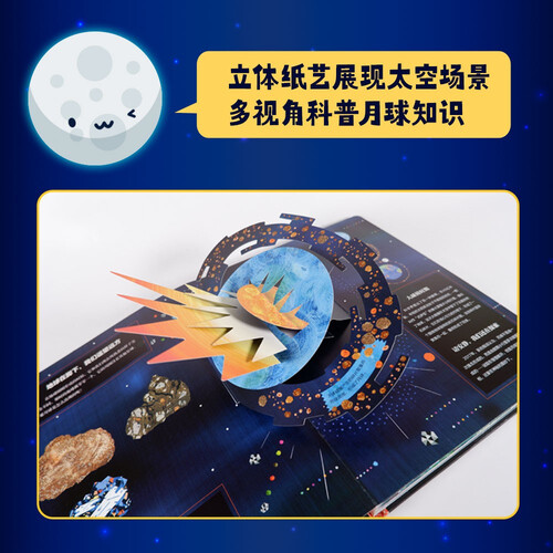 此书用立体的方式,揭秘了人类探月、登月的全过程。为小读者更好地理解天文学,更设计了互动立体机关页,对于月球轨迹进行揭秘。
