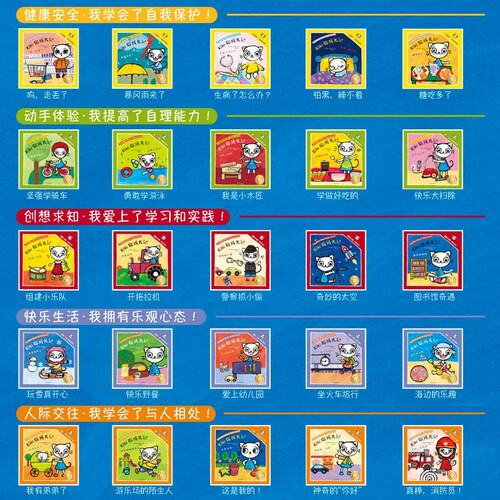 故事一共有5个主题,涵盖了生活中的每个方面,让孩子提前接受教育。每本书提供真实情境,帮助孩子学习技能,成长为更好的自己。