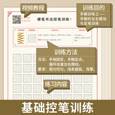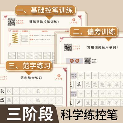 硬笔书法控笔训练,阶段进行,层层递进,有利于孩子逐步成长,减小压力感。赠送8支笔芯和握笔器,优惠力度大,很实惠。