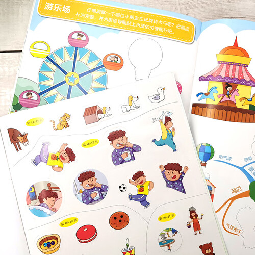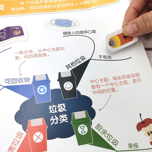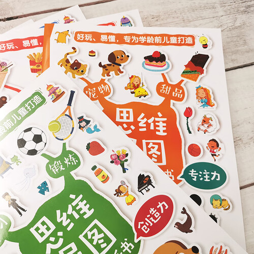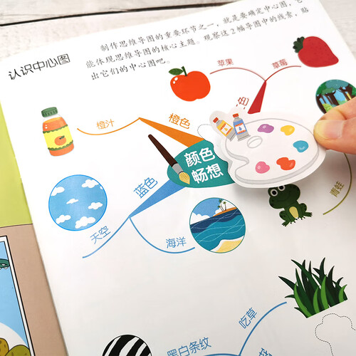 书中以儿童熟悉的家庭、学校、公园、农场等情节内容为主题,借助有趣易懂的游戏内容,让孩子用贴纸补充半成品思维导图。