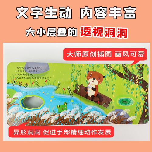 精装硬纸板设计,防水防污更耐用。清新细腻的画风,将故事形象地展示出来。数十个异形洞洞,可以锻炼孩子的手部精细动作。