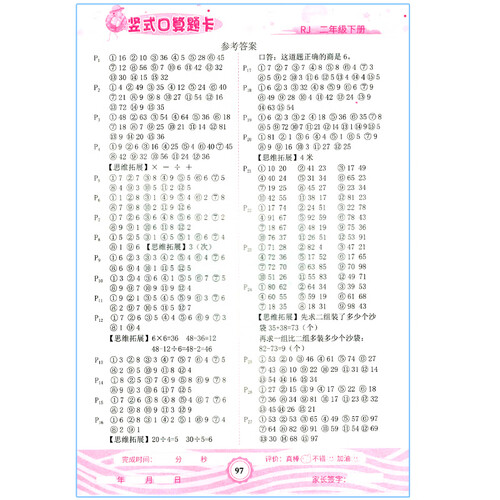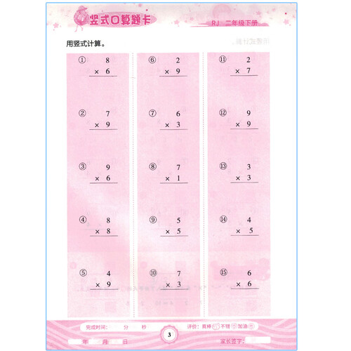 竖式计算题型全面,能够全方位锻炼学生解题思维,熟练掌握乘法口诀表。应用题设计难易程度分配合理,建立正确的数学解题思维。
