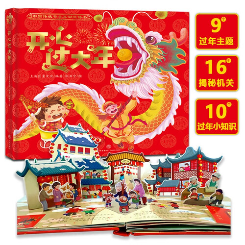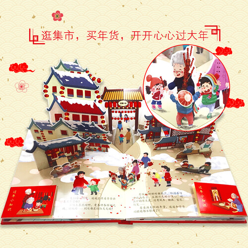 用一本立体书让孩子走进传统的中国年。全书用立体翻页的形式,将过年的习俗、趣事等都灵活灵现地呈现出来,直观感受新年气氛。
