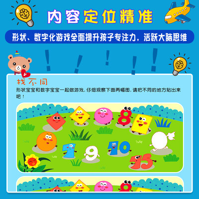 书中加入了贴纸元素,让孩子体验学与玩到乐趣。益智游戏,游戏形式多样,循序渐进全面提高孩子观察力、专注力,激发大脑潜能。