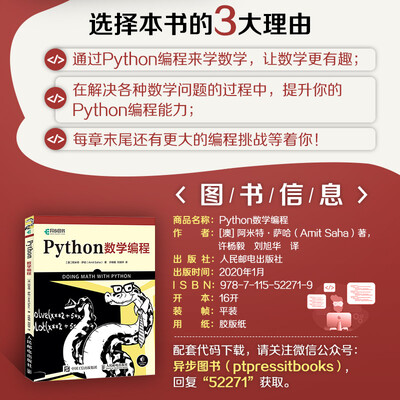通过阅读本书,读者将学会通过Python编程来学数学,并在解决数学问题的过程中提升编程能力。书中内容富有创意,新颖有趣。