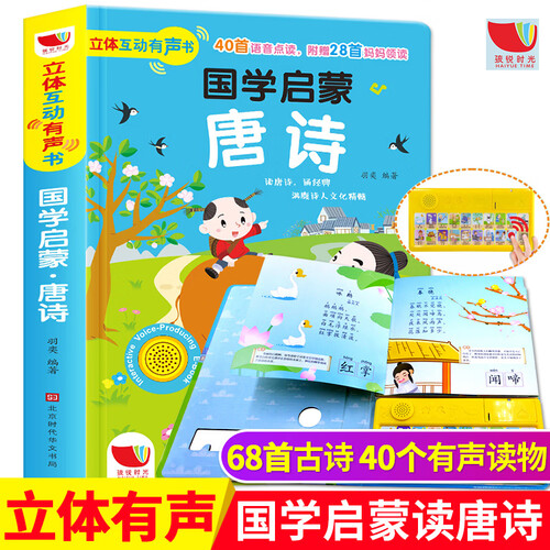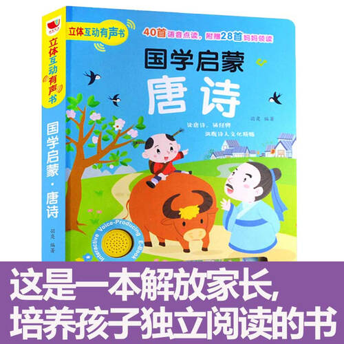 搭配图书的点读模块,让古诗能看、能听还能玩。编排上以古诗为主体,附有写意彩图和简短翻译,加深对古诗的理解记忆。