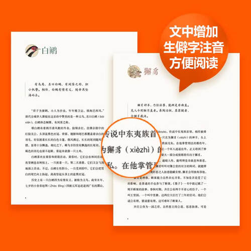 大幅故宫珍藏图画,主题囊括了自然、地理、历史等,高清全彩大图,让孩子直观了解生物的形象。文中对生僻字加注音,阅读更方便。