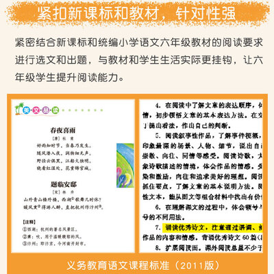 该书彩版印刷,极大地吸引学生的注意力,激发学生的阅读兴趣,专注培养学生的语文阅读能力,学生可以自主进行练习。