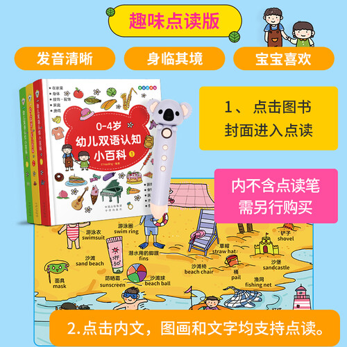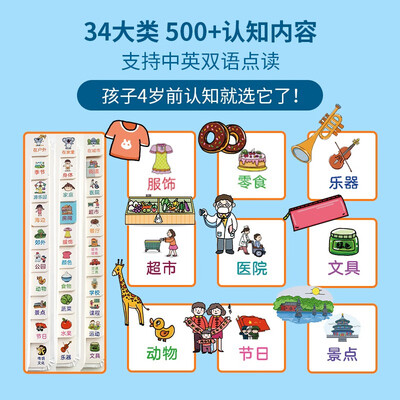 图书内容涵盖了包罗万象的事物,以浸入式的方式让宝宝提高认知力,多维角度的互动英语音效,跟读学习为词汇量积累打基础。