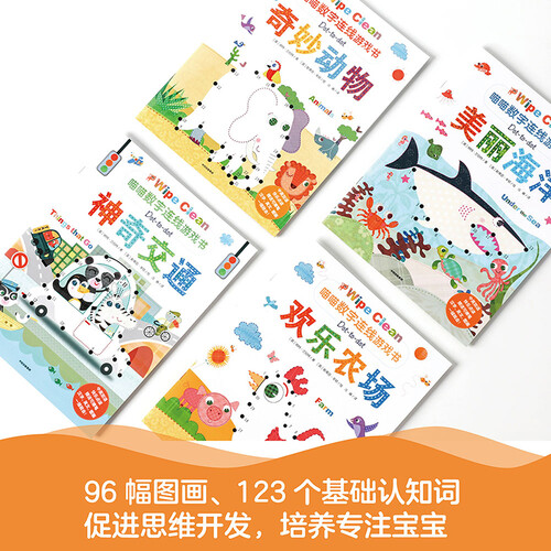 这套书将汉字、数字、英文、图画相结合,通过连线游戏帮助孩子认知事物。具有点读功能,孩子可边听边学,获得轻松的学习体验。