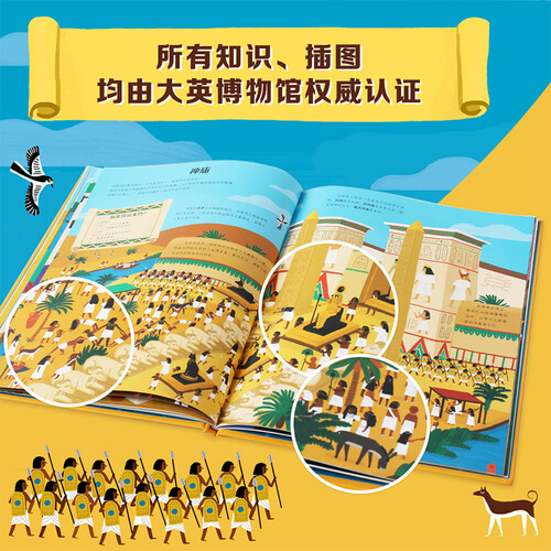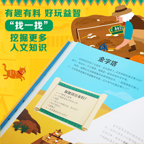 书本采用历史与游戏结合的排版方式,以13个全景式场景为主题,将艺术、教育、农业等历史知识,生动逼真地呈现在孩子眼前。