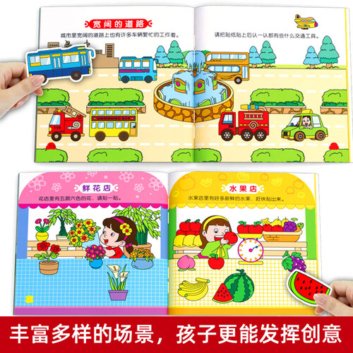 为2到5岁孩子准备的,巧妙的构思,将贴纸游戏与启蒙认知相结合,可以在粘贴贴纸的过程中学到很多简单有趣的小知识。
