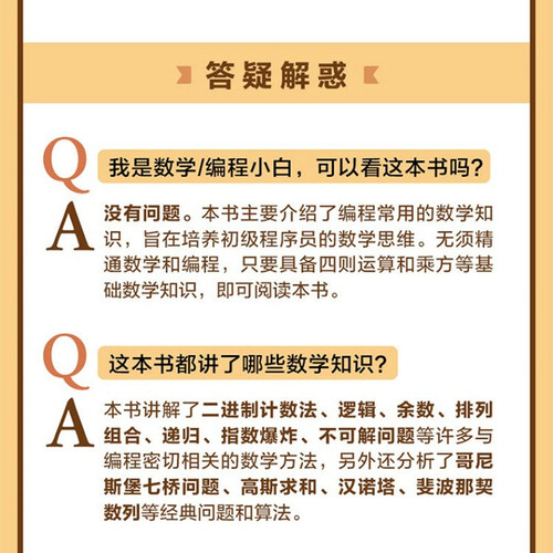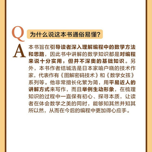 这本书面向程序员介绍了编程中常用的数学知识,借以培养初级程序员的数学思维,引导读者深入理解编程中的数学方法和思路。