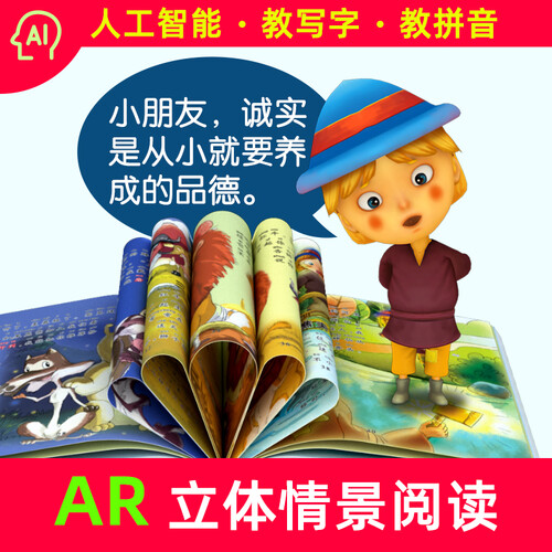 这套书通过AI智能助学,为适龄儿童提供智能AR互动学习,3D互动词语解释,引导孩子读懂故事,理解故事内容。