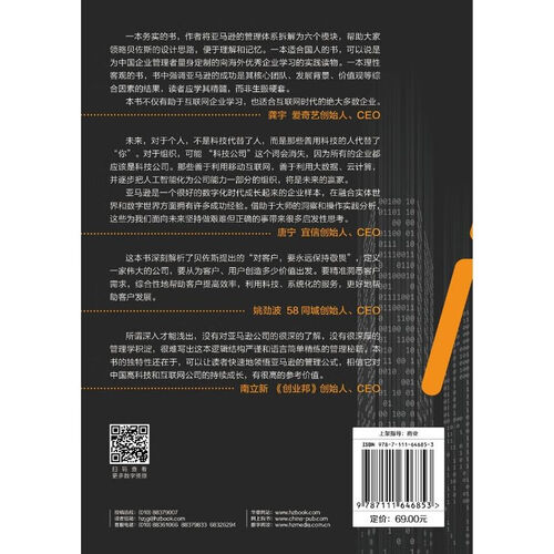 这本书将贝佐斯数字帝国的管理体系拆解为六大模块,帮读者看清贝佐斯数字帝国的发展历程,从而看清企业数字化的未来。