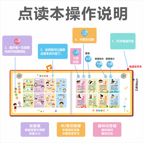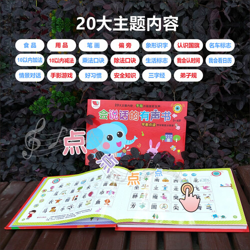 此书讲述了20大主题,只需要手指点触就能够发声,结合声音、图形、汉字、英文等,培养孩子认知汉字的能力。