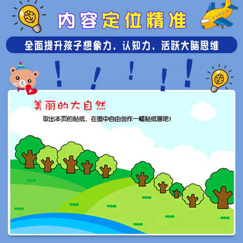 宝宝可以通过贴纸游戏,填补书中的空白处,提高专注力和行动力,帮助孩子进行智力开发和认知训练。